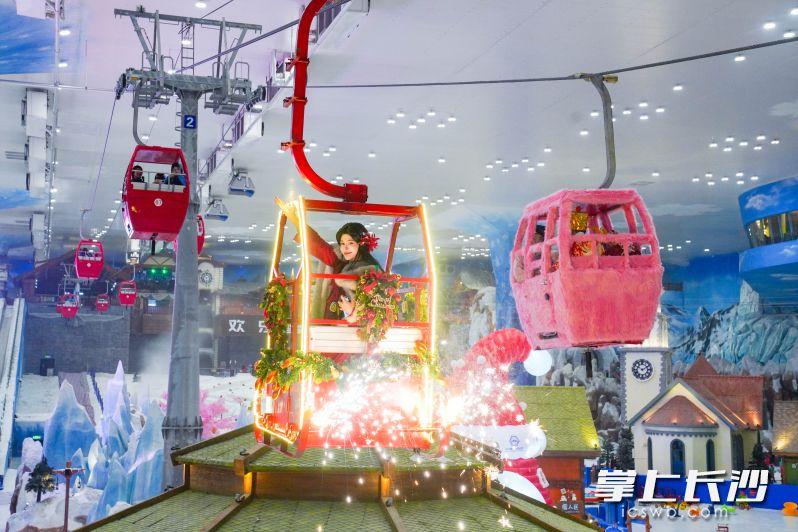 湘江冰雪世界开放夜场,让游客实现“滑雪自由”,同时以“阿尔卑斯童话季”为主题,将冰雪奇缘与新春氛围深度融合,游客可乘坐粉色梦幻的雪国缆车穿梭于晶莹冰挂间,或挑战冷焰空中飞索,在零下5℃的恒温环境中感受“冰火两重天”的刺激。